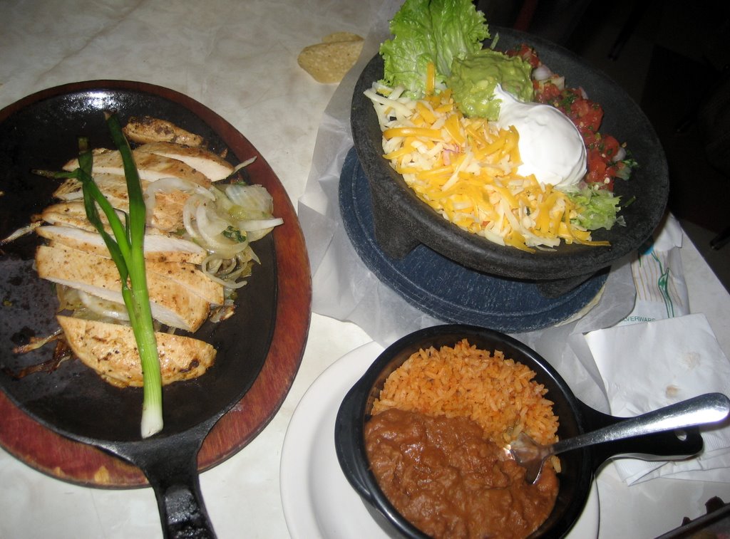 Fajita chicken with grilled onions, flour tortilla, lettuce, guacamole, sour cream, cheese, pico de gallo, rice and beans. Our hunt for good fajitas in Austin ends here (notice we said good, not great). It comes served in a skillet, but it wasn’t sizzling or aromatic. This could be because it wasn’t submerged in oil, which is a good thing if you prefer health over flavor. The chicken pieces are large, white, and tender – one of the freshest tasting chicken we’ve had at a Mexican restaurant. However, it was more like grilled chicken rather than “fajita” chicken. The flour tortillas were above average and the assortment of fixings made it a very enjoyable to eat.