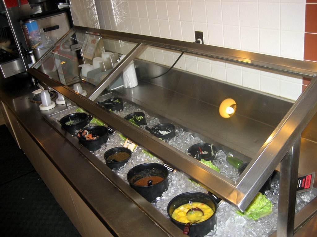 Char-broiled chicken or steak, romaine lettuce, cotija cheese, tomatoes, avocado and tortilla strips topped with chili-lime salad dressing. We ordered this one with chicken and it was good, just a little on the dry side again. The chili-lime dressing is pretty good. This is a solid salad; a little plain but easily spruced up with a condiment from the salsa bar. The mango salsa and the fire-roasted salsa were up to par and added a little zing to this dish. Their salsas range from mild to wild!